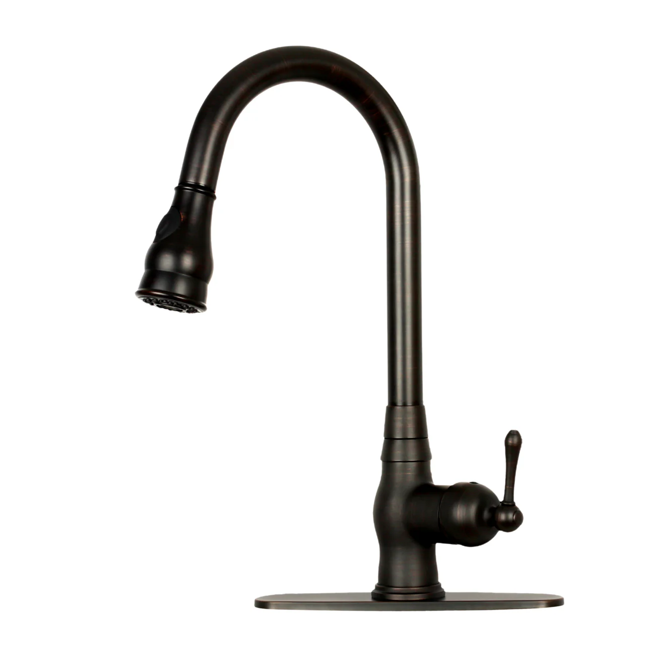 Pull Out Kitchen Faucet with Deck Plate, Single Level Solid Brass Kitchen Sink Faucets with Pull Down Sprayer-PDF38